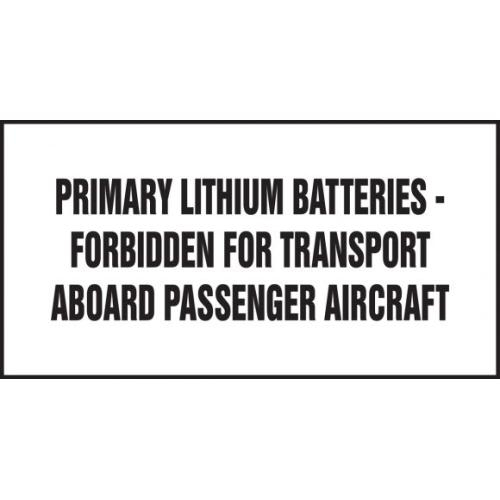 Accuform, MPC204, 4" x 6" Lithium Battery Label "Primary Lithium Batteries - Forbidden for Transport Aboard Passenger Aircraft" Adhesive Coated Paper