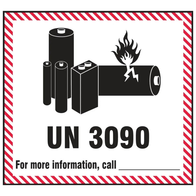 Accuform, MPC234, Hazardous Material Shipping Labels UN 3090 For More Information Call