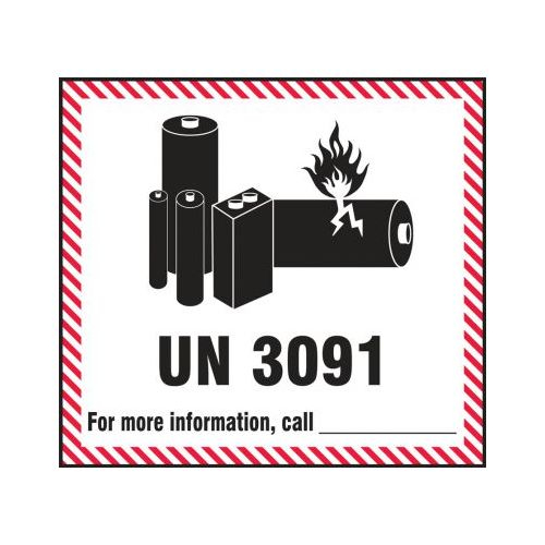Accuform, MPC241, Hazardous Material Shipping Labels, UN3091 - For More Information Call _, Pressure Sensitive Paper, 4 3/10" x 4 7/10"
