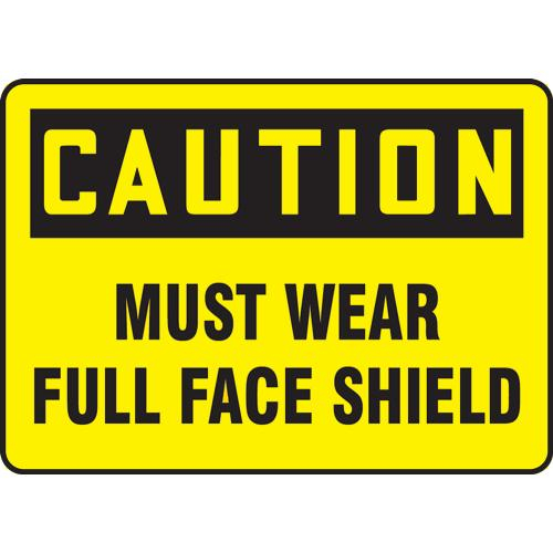 Accuform, MPPA698XT, 10" x 14" Dura-Plastic Sign: "Caution Must Wear Full Face Shield"