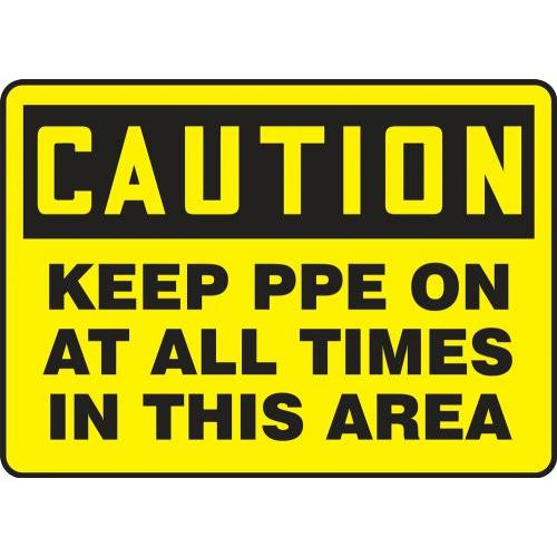 Accuform, MPPA711VA, 10" x 14" OSHA Caution Safety Sign "Keep PPE On At All Times In This Area" Aluminum