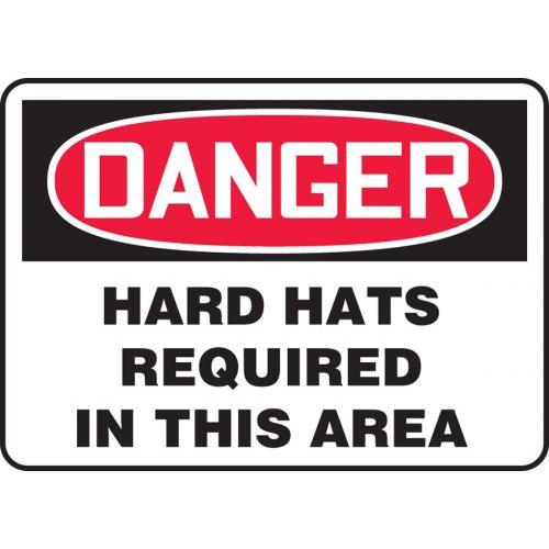 Accuform, MPPE087XT, 14" x 20" OSHA Danger Safety Sign "Hard Hats Required In This Area" Dura-Plastic