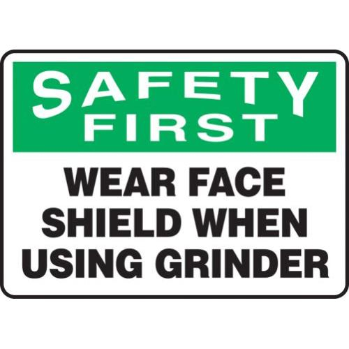 Accuform, MPPE914VA, 10" x 14" OSHA Safety Sign "Wear Face Shield When Using Grinder" Aluminum