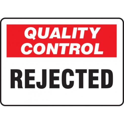 Accuform, MQTL715VP, 10" x 14" Quality Control Safety Sign "Rejected" Plastic