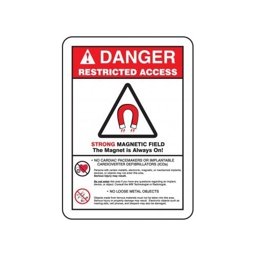 Accuform, MRAD140XL, 14" x 10" ANSI Danger Restricted Access Safety Sign "Strong Magnetic Field - The Magnet Is Always On" Aluma-Lite