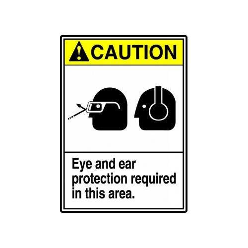 Accuform, MRPE604XP, 14" x 10" ANSI Caution Safety Sign "Eye And Ear Protection Required In This Area" Accu-Shield