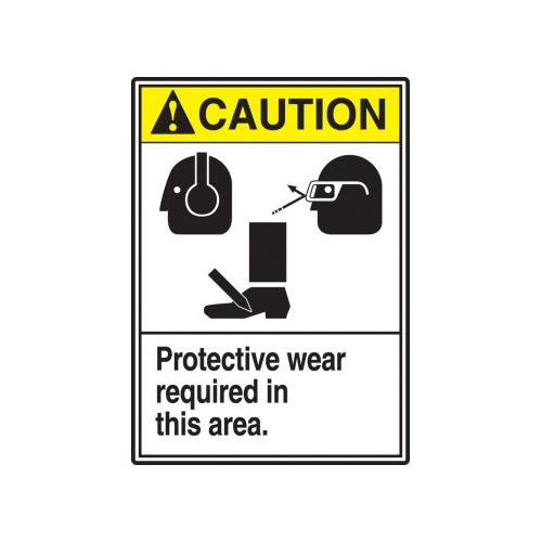Accuform, MRPE606XV, 14" x 10" ANSI Caution Safety Sign "Protective Wear Required In This Area." Adhesive Dura-Vinyl