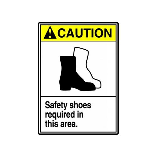 Accuform, MRPE638XV, 10" x 7" ANSI Caution Safety Sign "Safety Shoes Required In This Area" Adhesive Dura-Vinyl