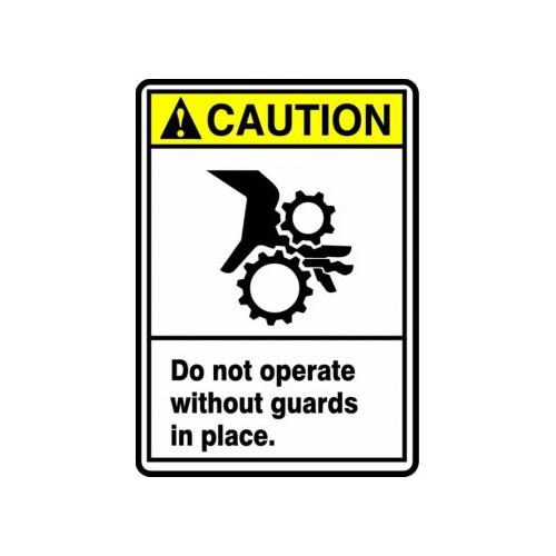 Accuform, MRQM603XT, 10" x 7" ANSI Caution Safety Sign "Do Not Operate Without Guards In Place." Dura-Plastic