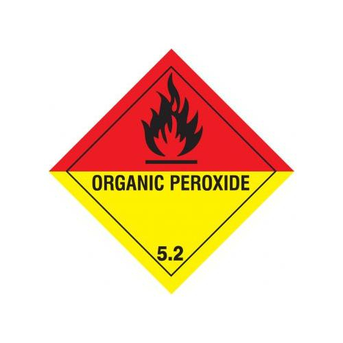 Package Qty: Roll of 500 pcs, Material: Adhesive Poly, Legend: Organic Peroxide