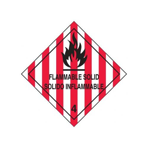 Accuform, MSLSP6EV2, 4" x 4" Bilingual DOT Label "Hazard Class 4 - Flammable Solid"