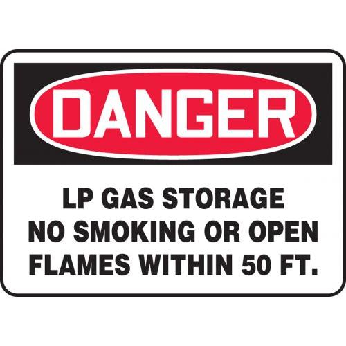 Accuform, MSMK010XT, 7" x 10" OSHA Danger Safety Sign "LP Gas Storage - No Smoking Or Open Flames Within 50 FT." Dura-Plastic