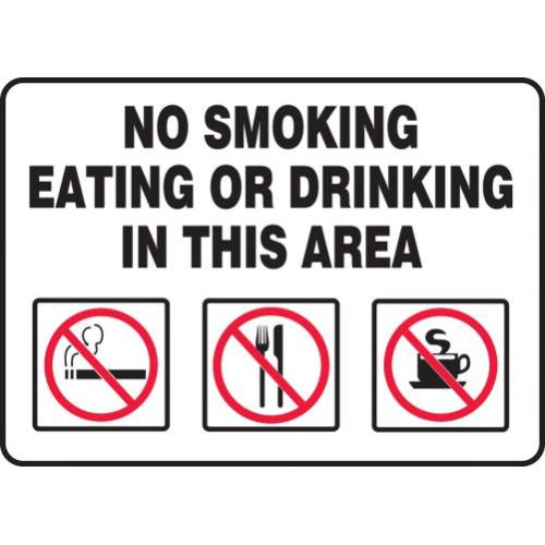 Accuform, MSMK408VS, 10" x 14" Safety Sign "No Smoking Eating Or Drinking In This Area" Adhesive Vinyl