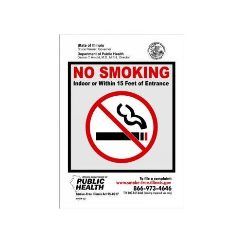 Accuform, MSMK464XV, 7" x 5" Safety Sign "No Smoking Indoor Or Within 15 Feet Of Entrance (Illinois)" Adhesive Dura-Vinyl