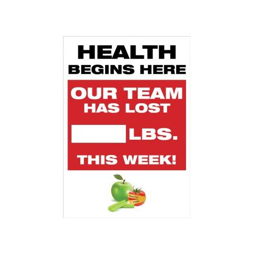 Accuform, MSR816PL, 20" x 14" WorkHealthy Write-A-Day Scoreboard "Health Begins Here - Our Team Has Lost _ Lbs This Week" Plastic