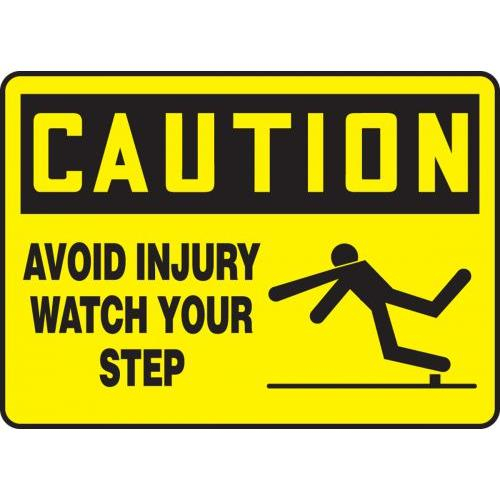 Accuform, MSTF617XL, 7" x 10" OSHA Caution Safety Sign "Avoid Injury - Watch Your Step" Aluma-Lite