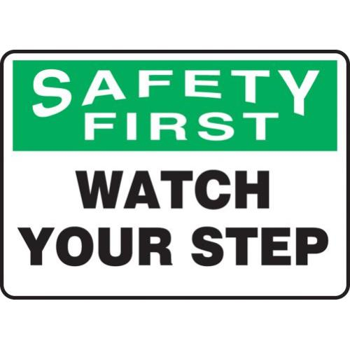 Accuform, MSTF902VP, 7" x 10" OSHA Safety First Safety Sign "Watch Your Step" Plastic