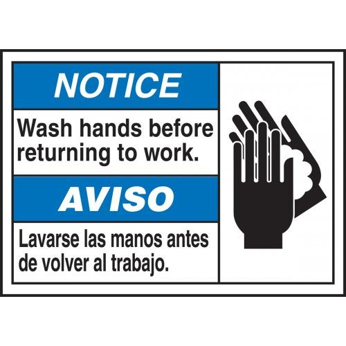 Accuform, MTAS816XV, 10" x 14" ANSI Notice Safety Sign "Wash Hands Before Returning to Work" Adhesive Dura-Vinyl
