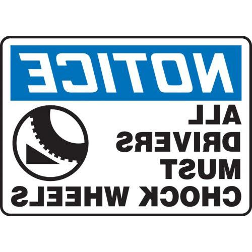 Accuform, MTKC821VA, 14" x 20" OSHA Notice Safety Sign "All Driver Must Chock Wheels" Aluminum