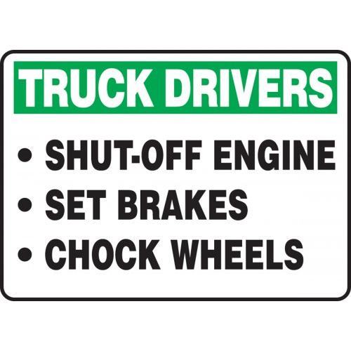 Accuform, MTKC909VP, 14" x 20" Truck Driver Backwards Safety Sign "Shut-Off Engine - Set Brakes - Chock Wheels" Plastic
