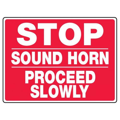 Accuform, MVHR485VA, 14" x 20" Safety Sign "Stop - Sound Horn - Proceed Slowly" Aluminum