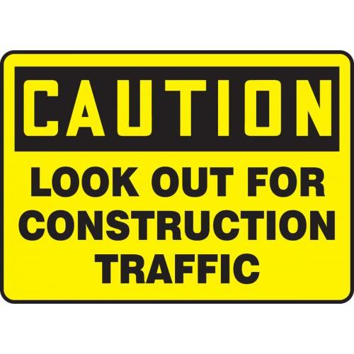 Accuform, MVHR610VS, 10" x 14" OSHA Caution Safety Sign "Look Out For Construction Traffic" Adhesive Vinyl