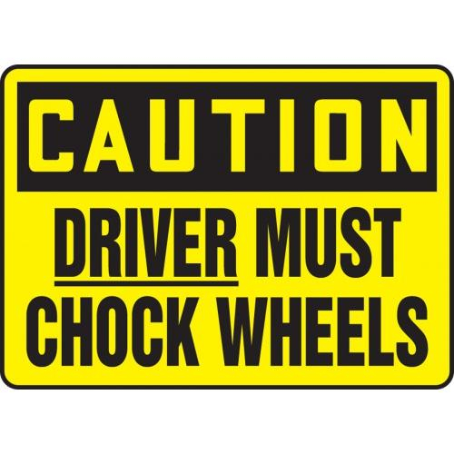 Accuform, MVHR626VA, 10" x 14" OSHA Caution Safety Sign "Driver Must Chock Wheels" Aluminum