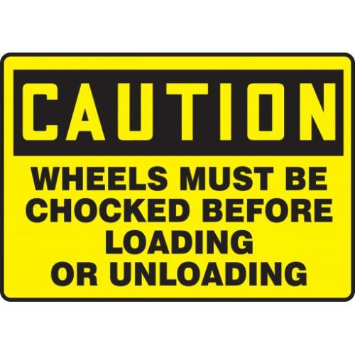 Accuform, MVHR691XL, 7" x 10" OSHA Caution Safety Sign "Wheels Must Be Chocked Before Loading Or Unloading" Aluma-Lite