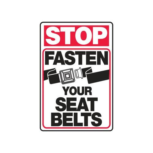 Accuform, MVHR903VP, 14" x 10" Stop Safety Sign "Fasten Your Seat Belts" Plastic