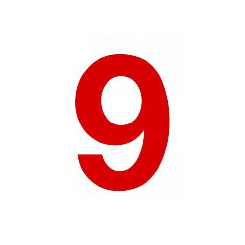Accuform, NCC1069RDWT, 14" x 10" Really Big Character Sign "9" Red/White