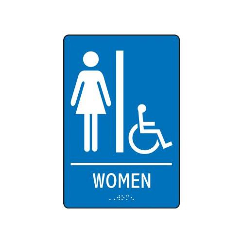 Accuform, PAD110BU, 9" x 6" ADA Braille Tactile Restroom Sign "Handicap Accessible Women" White/Blue