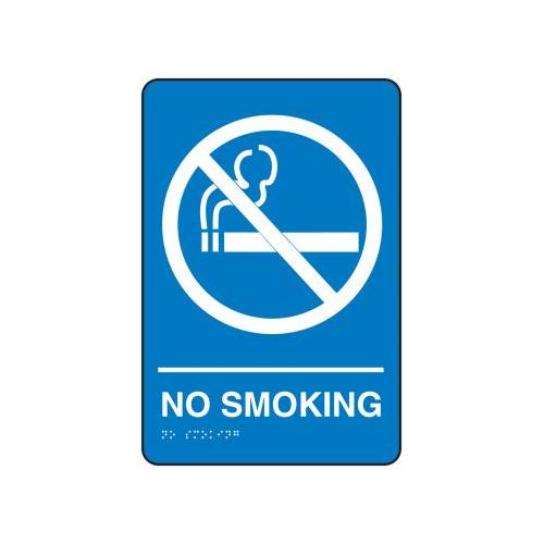 Accuform, PAD120BU, 9" x 6" ADA Braille Tactile Restroom Sign "No Smoking" White/Blue