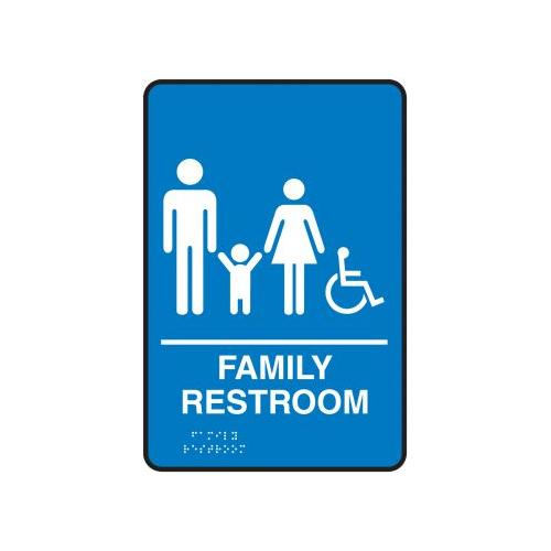 Accuform, PAD122BU, 9" x 6" ADA Braille Tactile Restroom Sign "Family Restroom" White/Blue