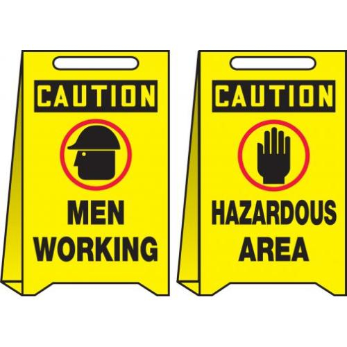 Accuform, PFE403, 20" x 12" OSHA Caution Reversible Fold-Ups Floor Sign "Men Working - Hazardous Area" Corrugated Plastic