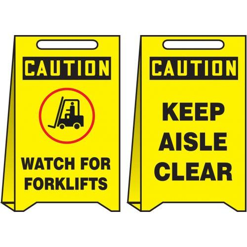 Accuform, PFE434, 20" x 12" OSHA Caution Reversible Fold-Ups Floor Sign "Watch for Forklifts - Keep Aisle Clear" Corrugated Plastic