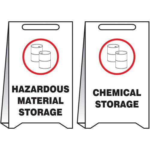 Accuform, PFE436, 20" x 12" Reversible Fold-Ups Floor Sign "Hazardous Material Storage - Chemical Storage" Corrugated Plastic