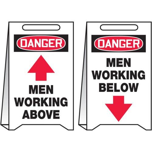 Accuform, PFE470, 20" x 12" OSHA Danger Reversible Fold-Ups Floor Sign "Men Working Above - Men Working Below" Corrugated Plastic