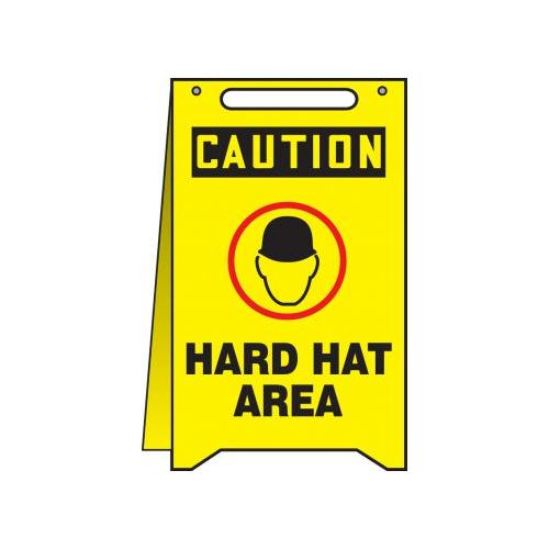 Accuform, PFR619, 20" x 12" OSHA Caution Fold-Ups Floor Sign "Hard Hat Area"