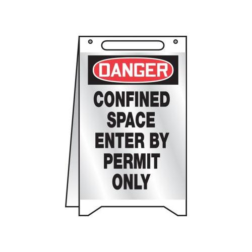 Accuform, PFR701, 20" x 12" OSHA Danger Reflective Fold-Ups Floor Sign "Confined Space - Enter By Permit"