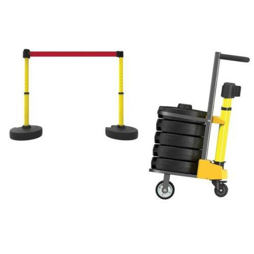Accuform, PRB916YL, Mobile Banner Stake Stanchion Cart, Red Belt "Blank", Yellow Post