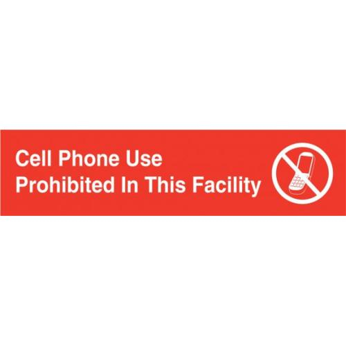 Accuform, PSG650RD, 3" x 12" Engraved Accu-Ply Sign "Cell Phone Use Prohibited In This Facility" White Letters on Red