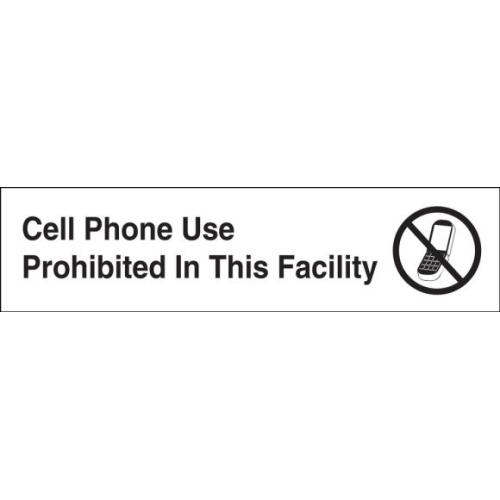 Accuform, PSG650WT, 3" x 12" Engraved Accu-Ply Sign "Cell Phone Use Prohibited In This Facility" Black Letters on White