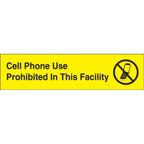 Accuform, PSG650YL, 3" x 12" Engraved Accu-Ply Sign "Cell Phone Use Prohibited In This Facility" Black Letters on Yellow