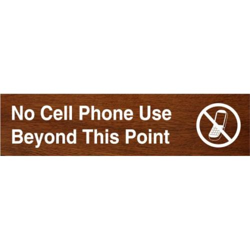 Accuform, PSG651WL, 3" x 12" Engraved Accu-Ply Sign "No Cell Phone Use Beyond This Point" White Letters on Walnut