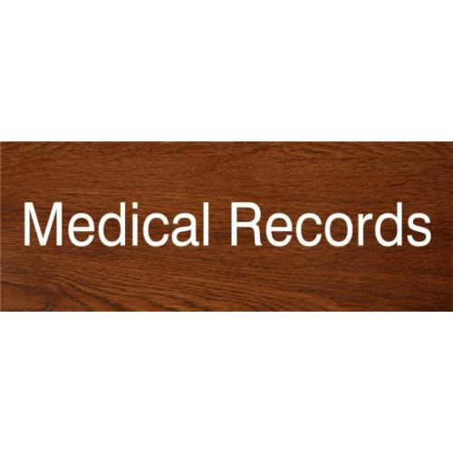 Accuform, PSG905WL, 3" x 8" Engraved Accu-Ply Sign "Medical Records" White Letters on Walnut