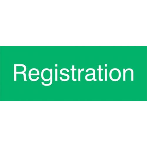 Accuform, PSG916GN, 3" x 8" Engraved Accu-Ply Sign "Registration" White Letters on Green