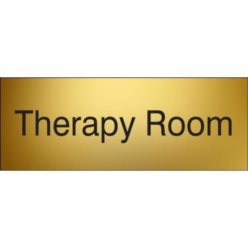 Accuform, PSG919BA, 3" x 8" Engraved Accu-Ply Sign "Therapy Room" Black Letters on Brass