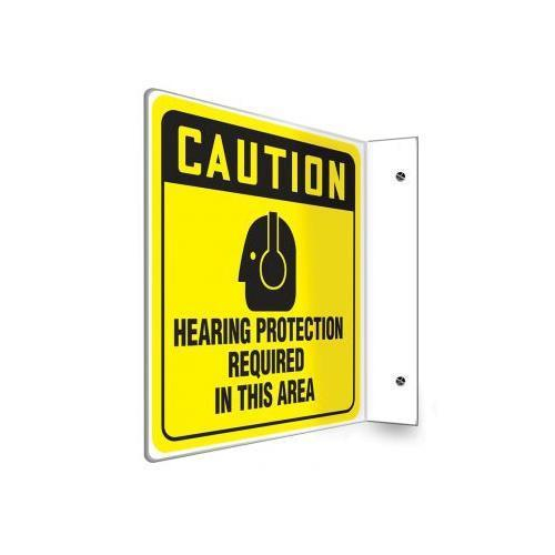 Accuform, PSP476, 8" x 8" Panel OSHA Caution Projection Sign "Hearing Protection Required In This Area"