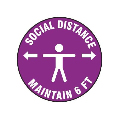 Accuform, PSW117PR, Pavement Print Sign: Social Distance Maintain 6 FT, Backgraund Color Purple, 17"