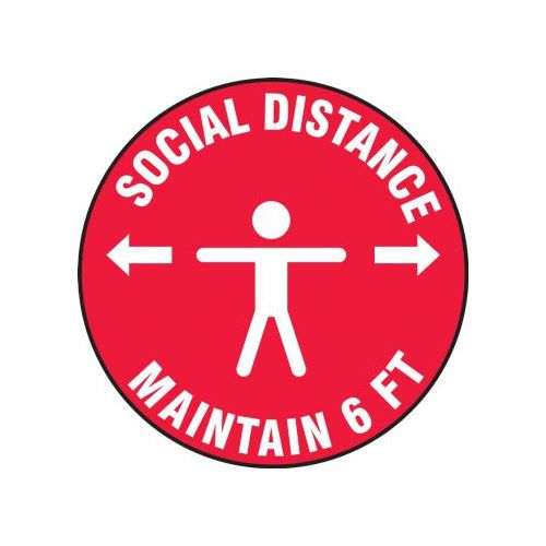 Accuform, PSW117RD, Pavement Print Sign: Social Distance Maintain 6 FT, Backgraund Color Red, 17"